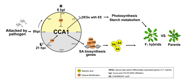生物钟核心因子 CCA1 通过时间策略平衡且同时提高杂交F1抗病-生长杂种优势的分子机制
