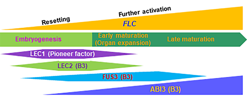 图1种子特异的LAFL基因依序表达形成“春化记忆”重置及FLC重新激活的分子通路 (https://doi.org/10.1093/plcell/koac077)