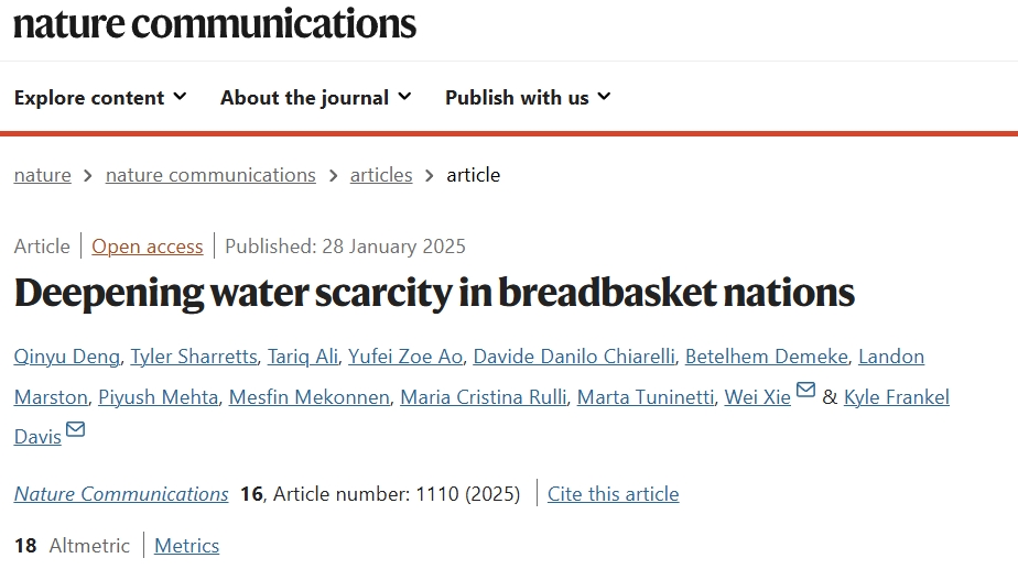 《自然·通讯》∣解伟课题组与合作者深挖全球主要粮仓水资源短缺背后的原因2025-02-14 -