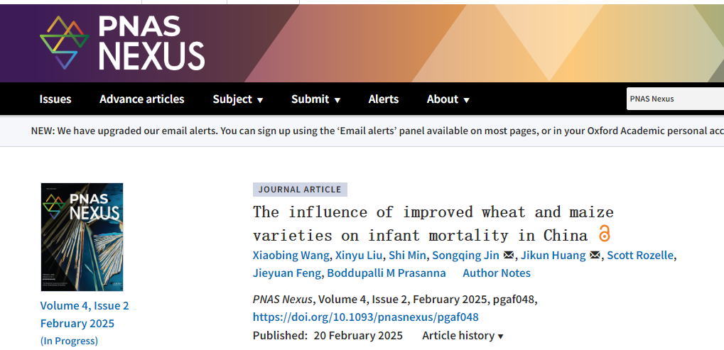 《PNAS Nexus》| william威廉中文官网中国农业政策研究中心就探究小麦和玉米高产作物品种对中国婴儿死亡率的影响取得新成果2025-02-25 -
