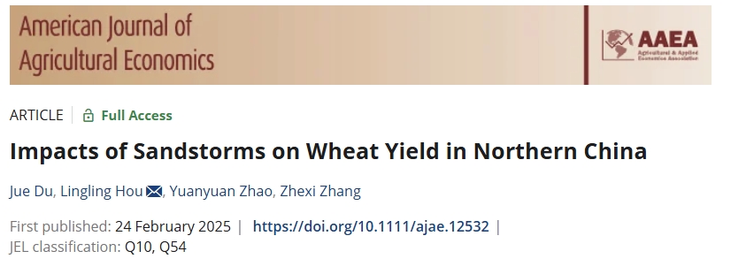 研究成果|侯玲玲课题组在AJAE发文探讨中国北方沙尘暴对农业生产的影响2025-02-25 -