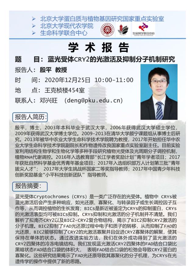 蓝光受体CRY2的光激活及抑制分子机制研究——殷平