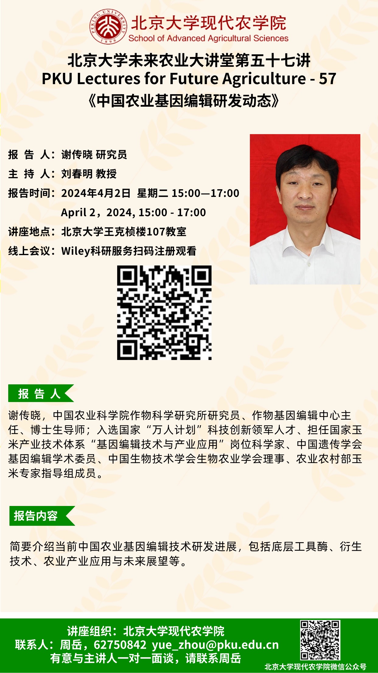 讲座通知:william威廉中文官网未来农业大讲堂第五十七讲——中国农业基因编辑研发动态