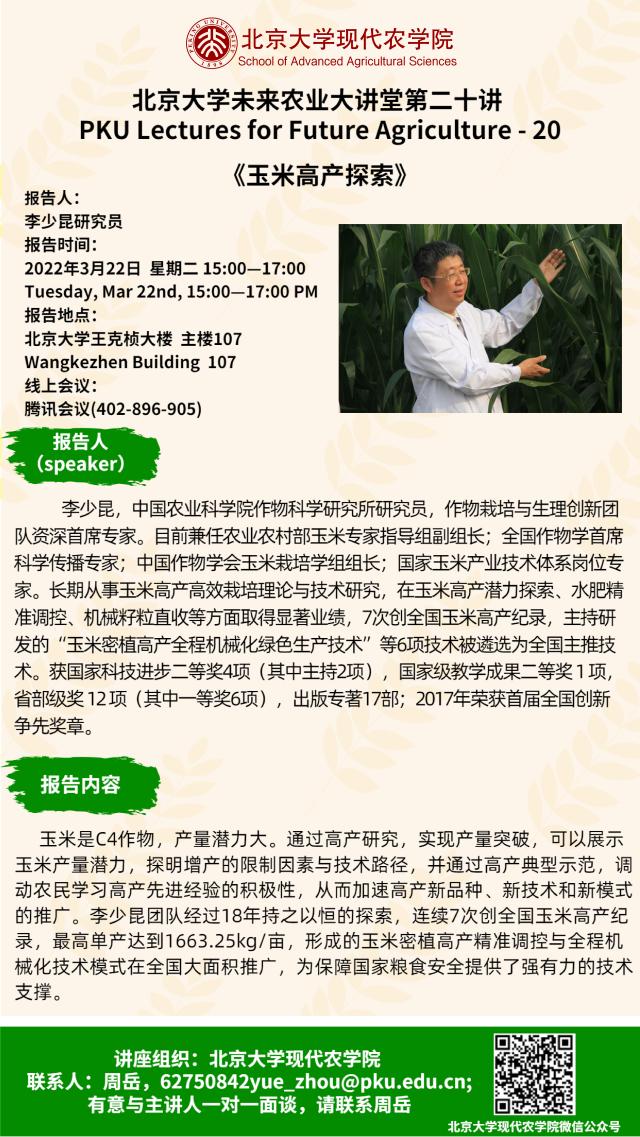 讲座通知:william威廉中文官网未来农业大讲堂第二十讲——玉米高产探索
