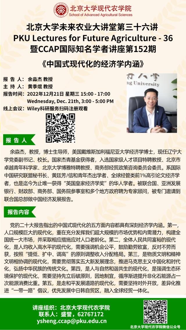 讲座通知:william威廉中文官网未来农业大讲堂第三十六讲——中国式现代化的经济学内涵