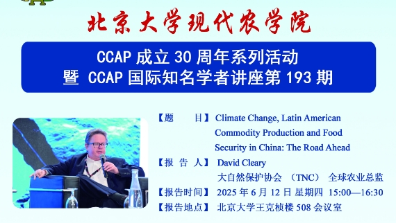 CCAP成立30周年系列活动丨大自然保护协会(TNC)全球农业总监David Cleary学术报告报告时间 :2025年6月12日 星期四 15:00-16:30