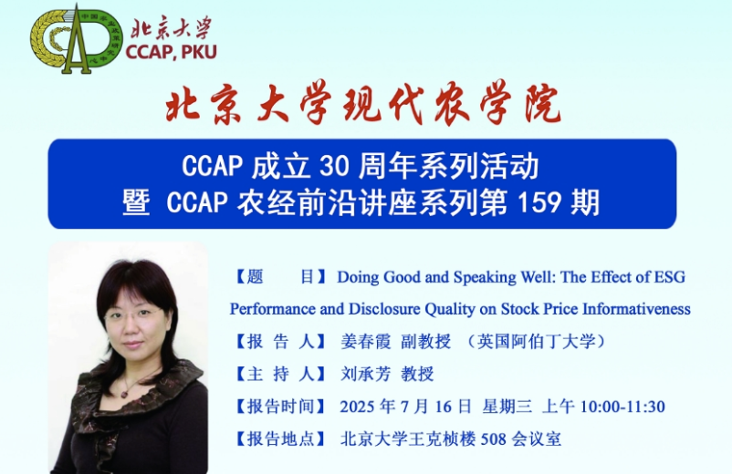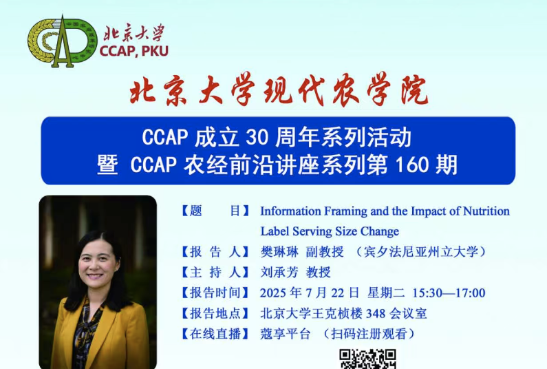 CCAP成立30周年系列活动——讲座预告 | 宾夕法尼亚州立大学樊琳琳副教授学术报告报告时间 :2025年7月22日 星期二 15:30-17:00