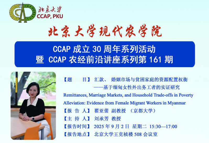 CCAP成立30周年系列活动——讲座预告 | 京都大学翟亚蕾副教授学术报告报告时间 :2025年9月2日 星期二 15:30-17:00
