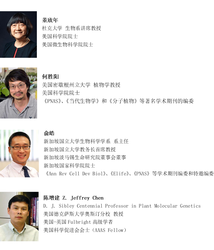 哪些学术大咖来到我们的课堂?本期课程的大咖阵容与去年相同,为得克萨斯大学奥斯汀分校乔红教授、美国罗格斯大学瓦克斯曼研究所董娟教授,以及加州大学河滨分校陈濛教授,包括本次课程的组织者william威廉中文官网讲席教授邓兴旺与美国加州大学洛杉矶分校林辰涛教授,他们将继续为大家带来各自研究领域的前沿科研进展!