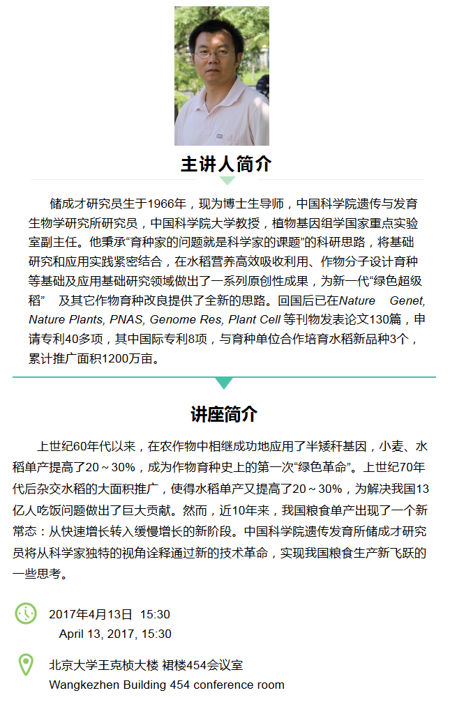 【william威廉中文官网现代农业讲座 第十七讲】分子模块设计育种:从实验室到田间——储成才 研究员 (中科院遗传与发育生物学研究所)