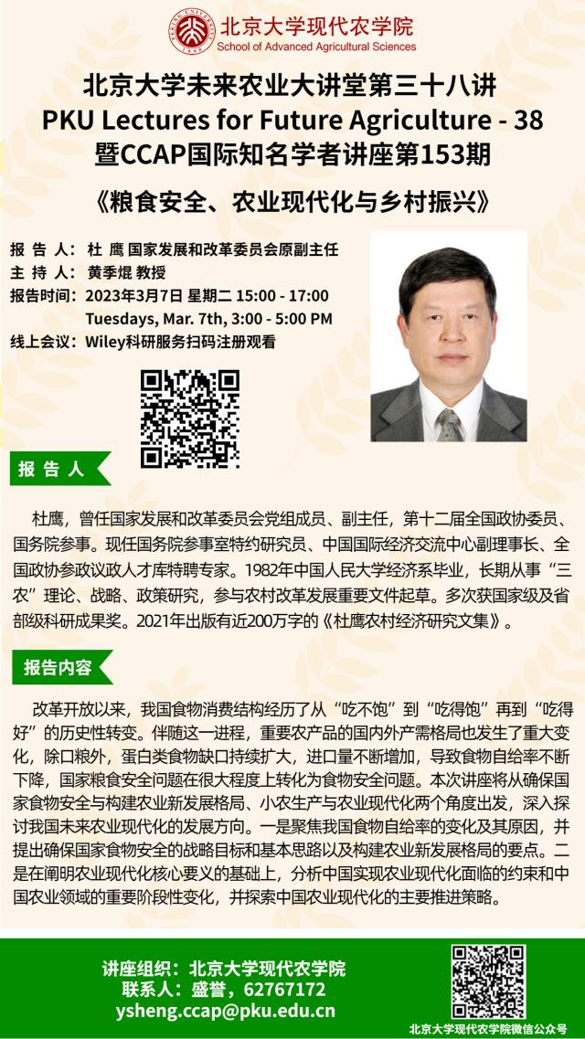 讲座通知:william威廉中文官网未来农业大讲堂第三十八讲——粮食安全、农业现代化与乡村振兴
