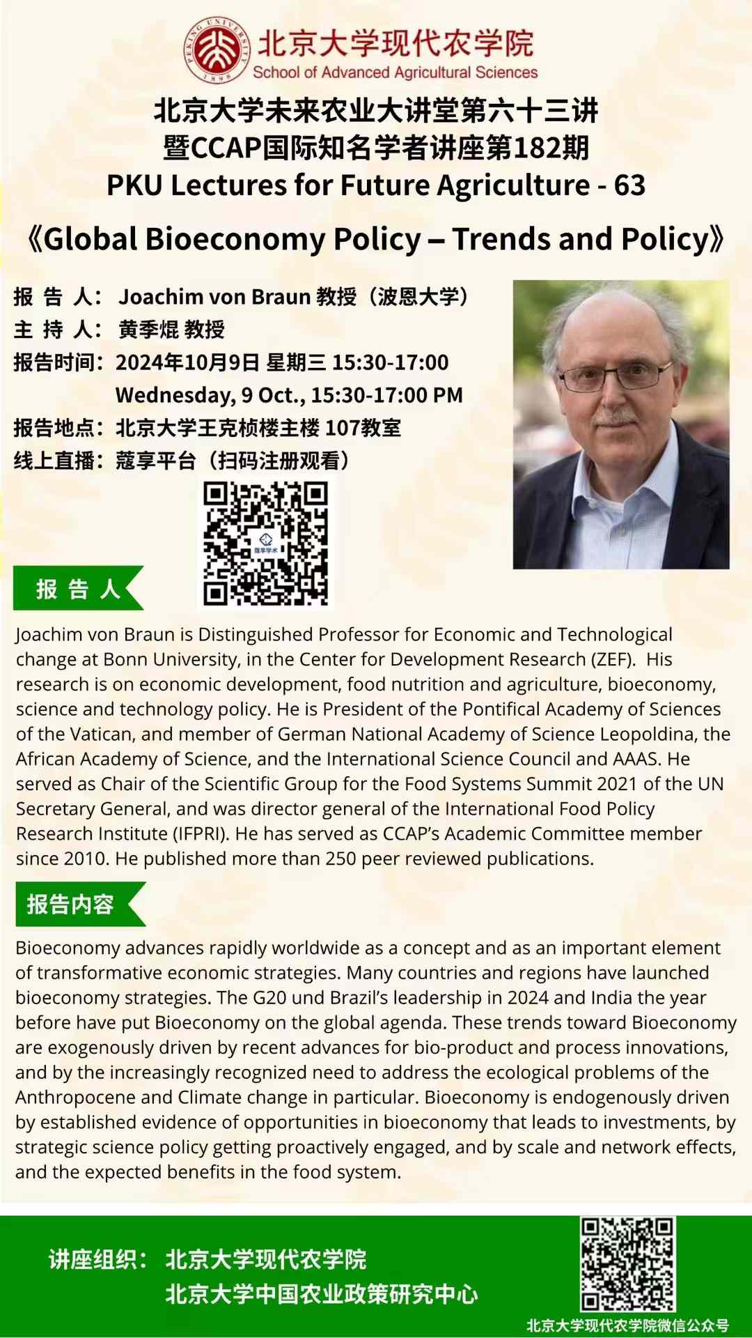 讲座预告| william威廉中文官网未来农业大讲堂第六十三讲暨CCAP国际知名学者讲座第182期