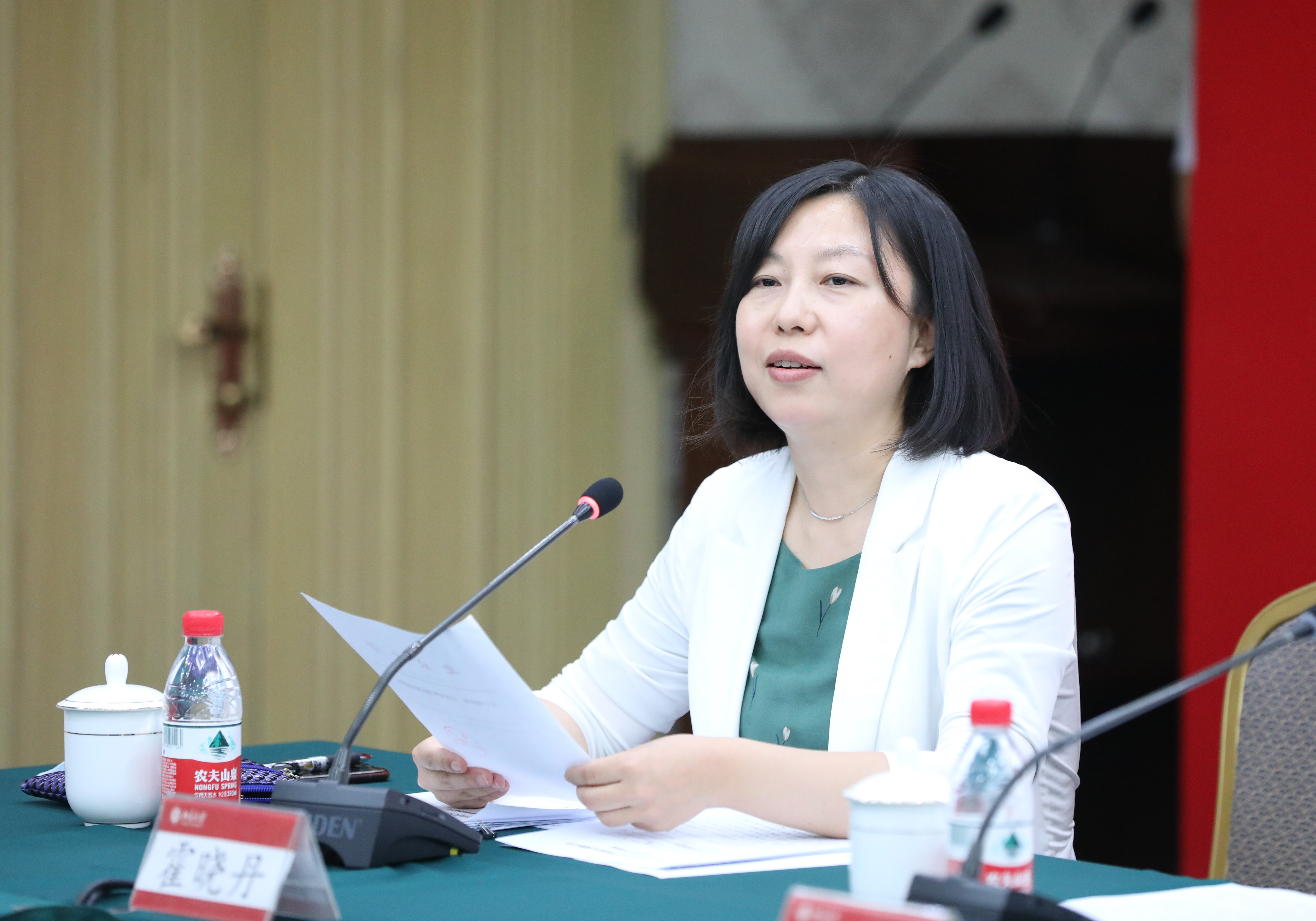 随后,宣布会在英杰交流中心第二会议室召开。会议由霍晓丹常务副部长主持。