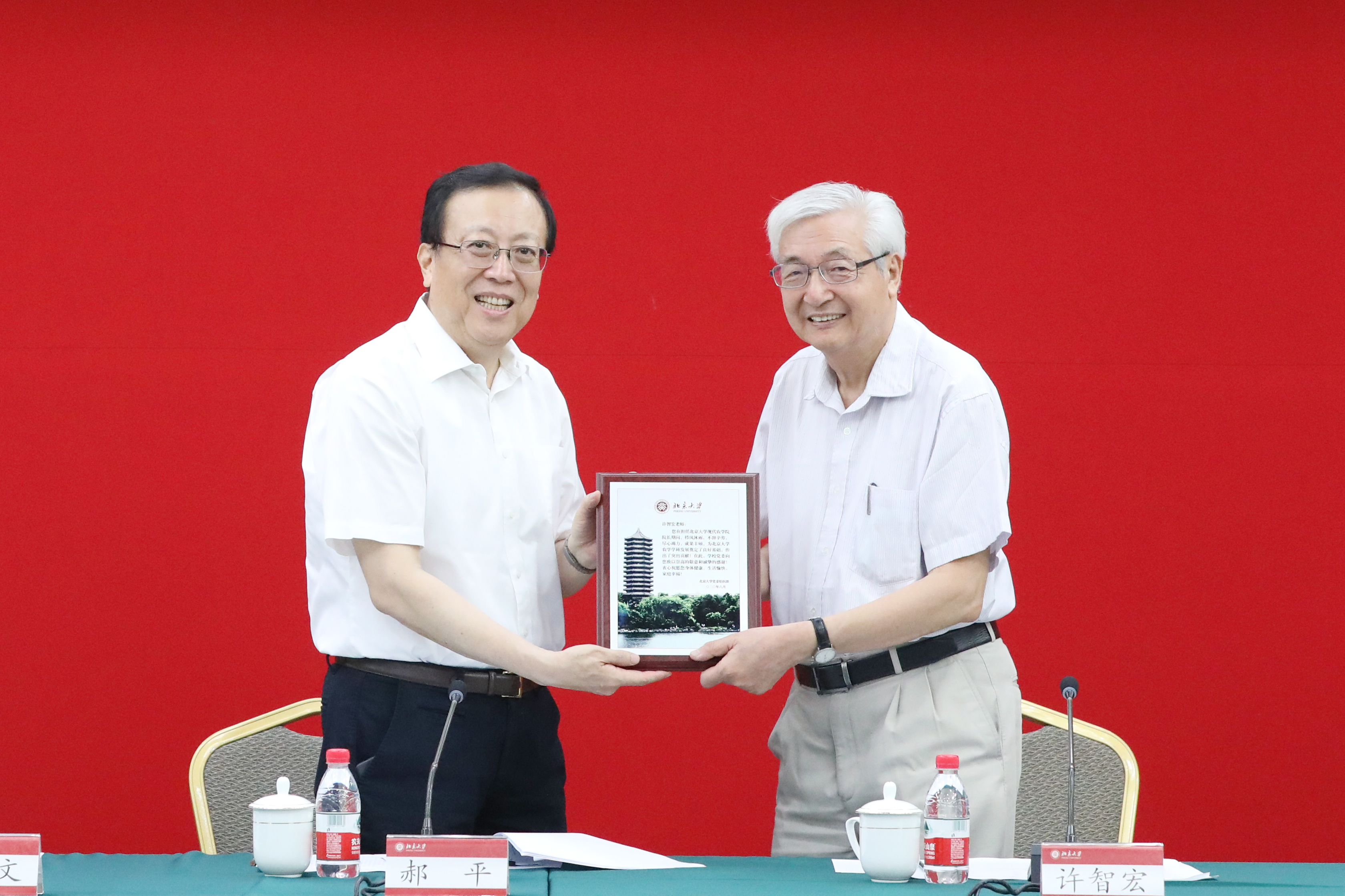 郝平董事长向许智宏同志颁发感谢状