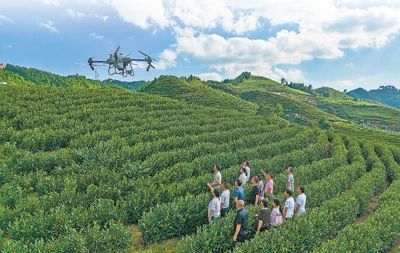 重庆市南川区在兴隆镇金花村白茶基地开展高素质农民植保无人机飞手培训。