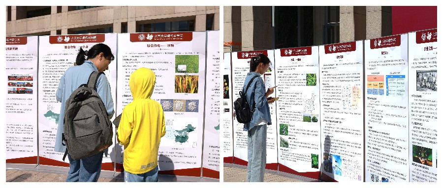 农作物是人们生活的必需品,它讲述了文明演进的历史,也承载着人类发展的未来。“稻粱丰岁•禾稷成章”主题科普展览分为图文展览和实物展示两部分内容。图文展览通过作物科普、现代农业技术科普改革开放以来的农业政策回顾、北大农学的发展历程等科普展板,带领参观者了解农作物的前世今生,走近最新的现代农业技术,深入解读国家的农业政策,了解分子农学、农业与发展经济、智慧农业、食物安全与健康等多个学科的发展方向与最新研究成果。
