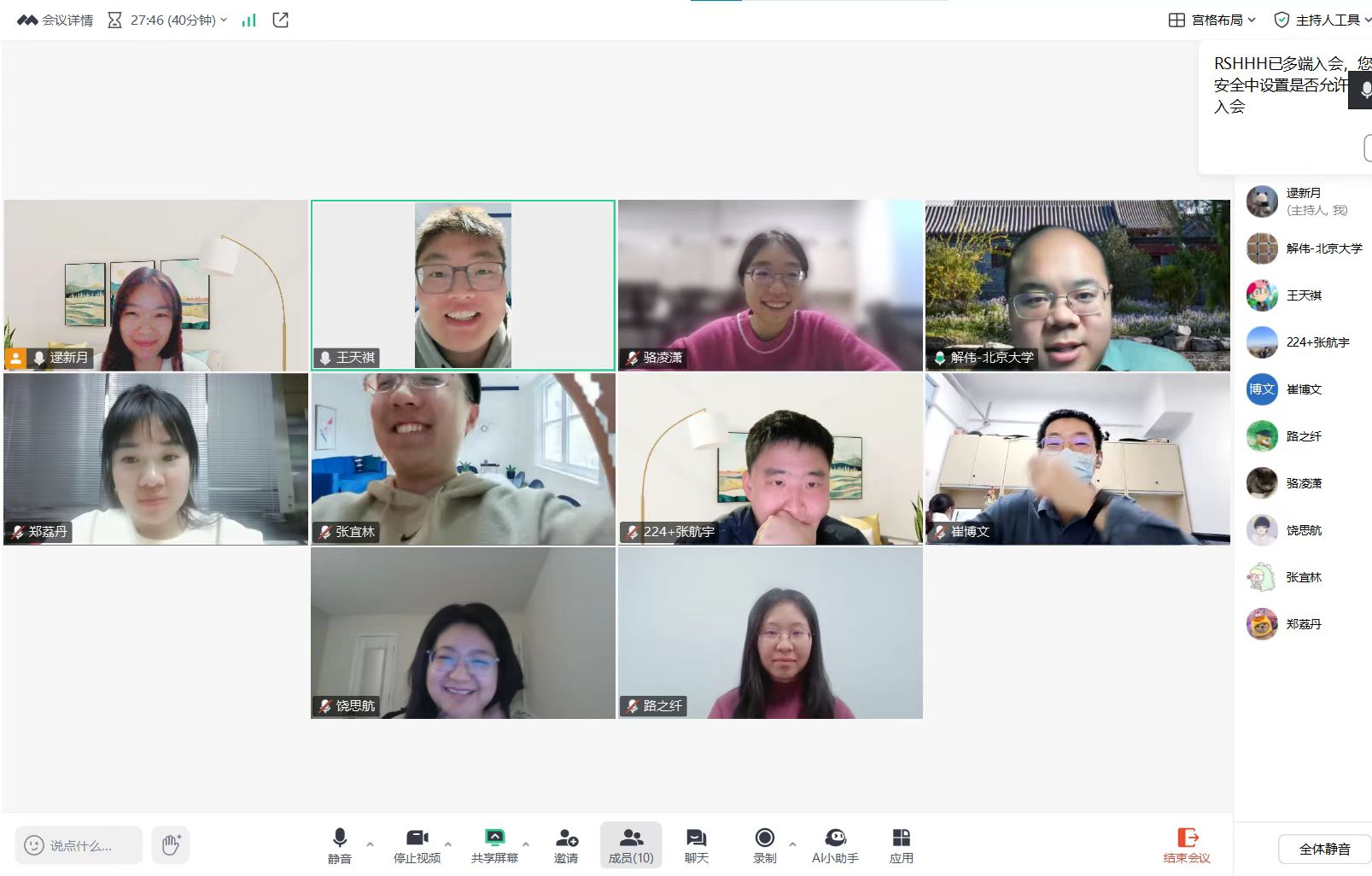 • 对在美国访学的团员,他热切关心团员在国外的学习和生活是否习惯。跨国时差也阻隔不了对科研和论文进展的关怀。