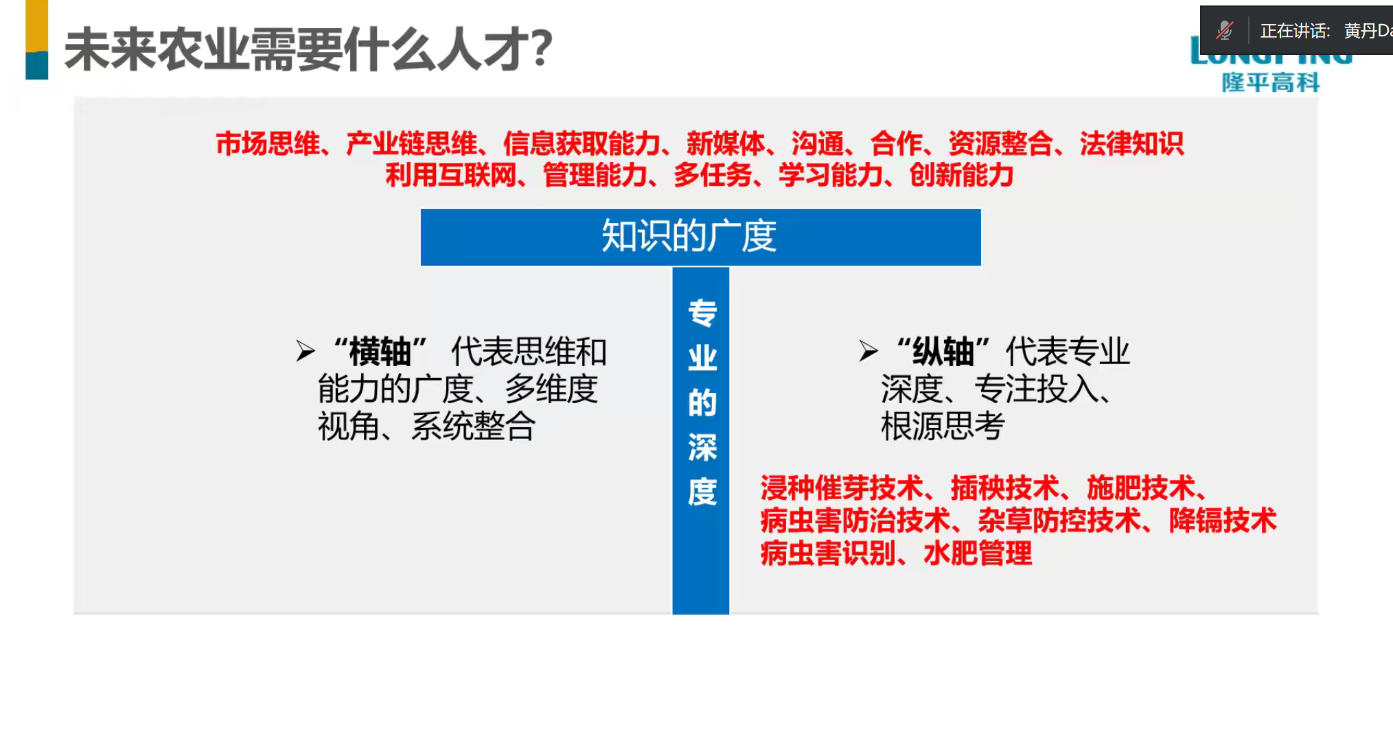 在讲座的最后环节,隆平高科人力资源副总黄丹与党委委员、科研管理部总经理杨广共同与员工党员开展就业规划方面的交流。黄丹强调,未来农业的发展需要的不仅仅是专业知识的深度,更需要宽广的知识视野和跨学科的综合能力。他指出,随着科技的进步和全球化的发展,农业领域正变得越来越复杂,需要能够理解并应用新技术、新理念的人才。