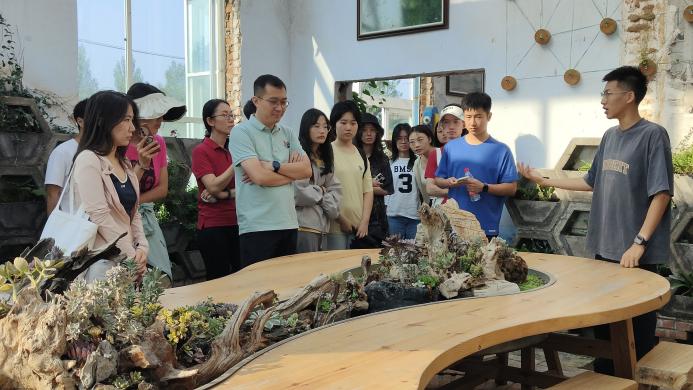 9月8日上午,同学们来到阳光曼波雨林生态科普馆这座集生态科普、旅游观光、研学教育等多功能于一体的综合性场馆。同学们参观了馆内层次丰富的雨林植被,各类耐旱的沙漠植物,溪流潺潺的萤火虫馆,品尝了风味独特的台湾美食。该馆的创办人是在农业领域有深厚积淀的黄文祥先生。黄文祥先生在台湾深耕农业多年,积累了丰富的乡村建设经验,他“登陆”大陆二十余载,其项目在山东多地落地开花。2021年,他被潍坊市昌乐县高崖水库库区的生态优势与人文底蕴所吸引,带领团队将废弃的酱菜厂冷库改造翻新,成功打造出这座独具特色的科普馆。他的儿子黄宏信也积极投身到大陆乡村建设中,在第28届鲁台会上,黄宏信作为台青代表,荣获“助力山东高质量发展突出贡献奖”。同学们将以此次实践为契机,在未来的学习与研究中,传承和发扬黄文祥先生等前辈们在生态农业领域的探索精神,为推动农业现代化与生态可持续发展贡献力量。