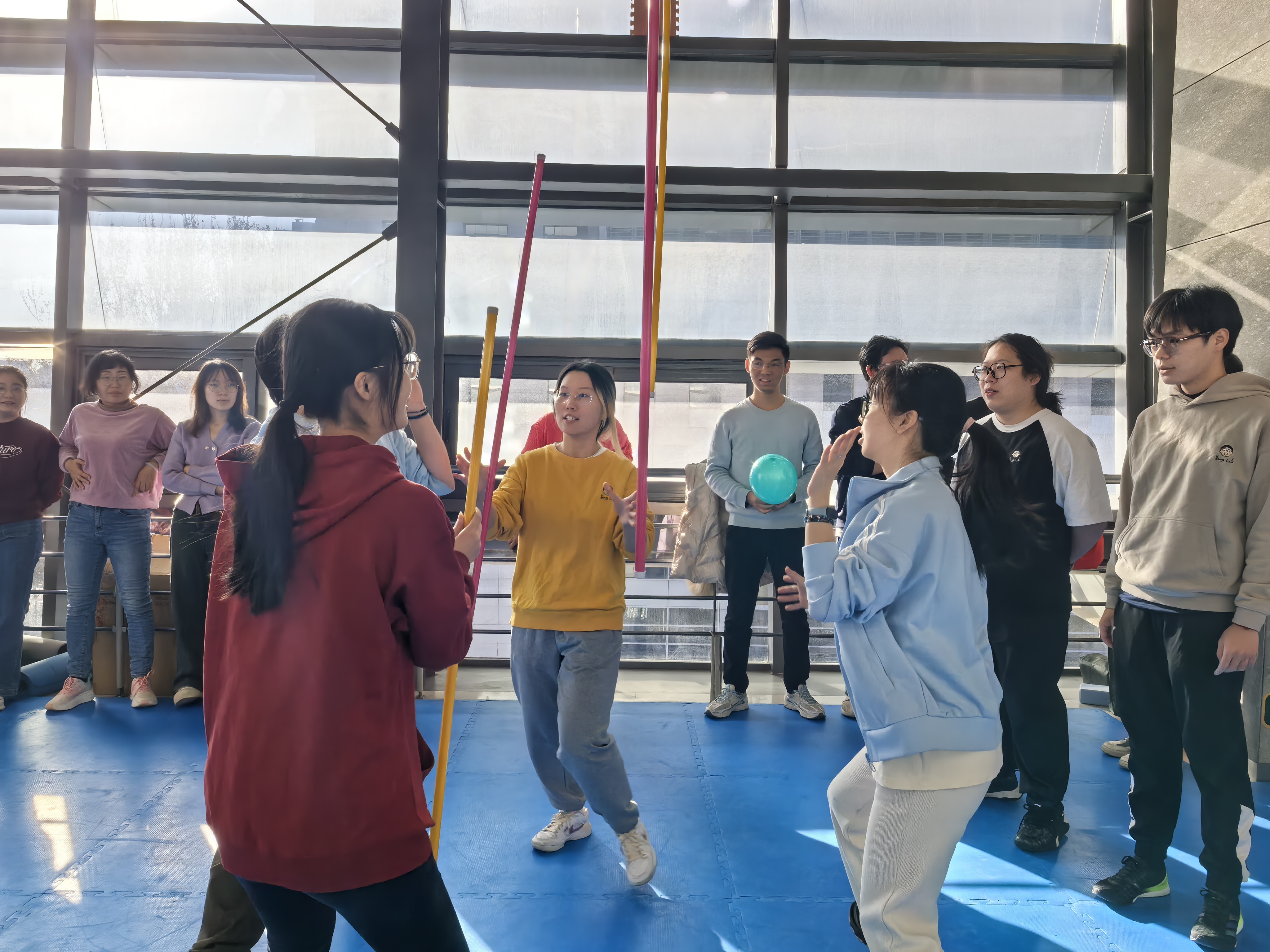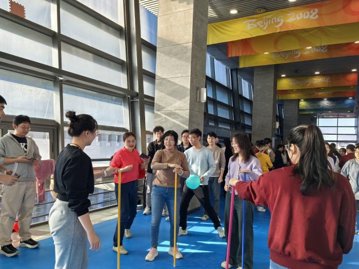 “不倒森林”作为第一个游戏项目拉开了比赛的序幕。本项目极其注重团队成员间的默契配合与快速反应能力。赛场上,加油声、欢呼声此起彼伏,热闹非凡。最终,“我们不是第一那就是结果不队”获得该项目第一名。
