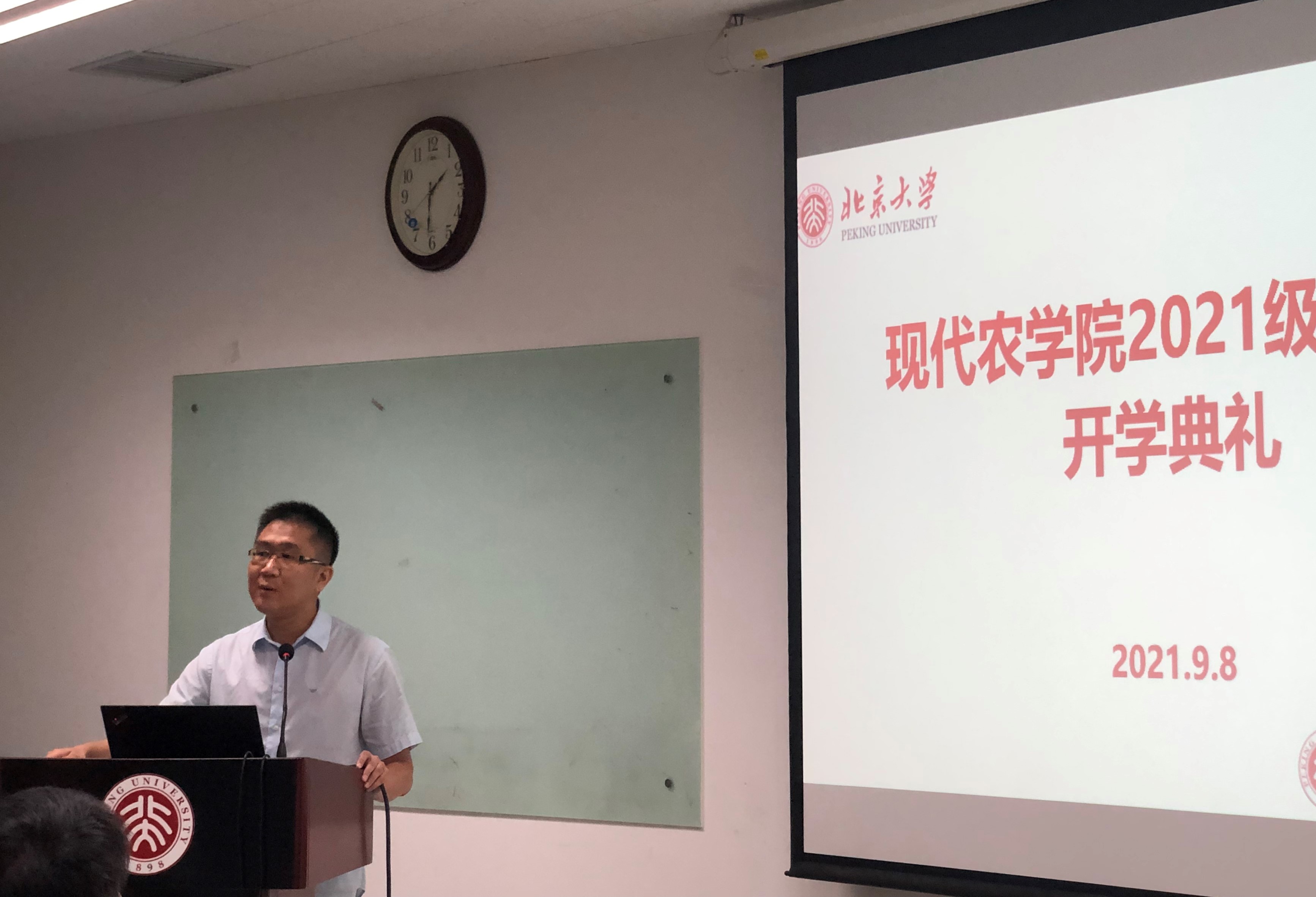 刘春明经理在讲话中首先对新生们通过百里挑一的考核进入北大表示祝贺。他表示,要勇于改变自己,提高洞察能力和解决问题的能力,成就不一样的自己;要心怀忠于国家、服务人民的责任感、紧迫感,多花一些时间在图书馆、在课堂上、在实验室、在调研现场,为国家农业发展、农民致富提出真知灼见。在全面介绍了学院的基本情况后,他指出,希望同学们能够牢记习近平总书记嘱托,“以实现中华民族伟大复兴为己任,不负时代,不负韶华,不负党和人民的殷切期望”,弘扬家国情怀,把稳人生方向;学农爱农、强农兴农,向人生更高的山峰攀登。