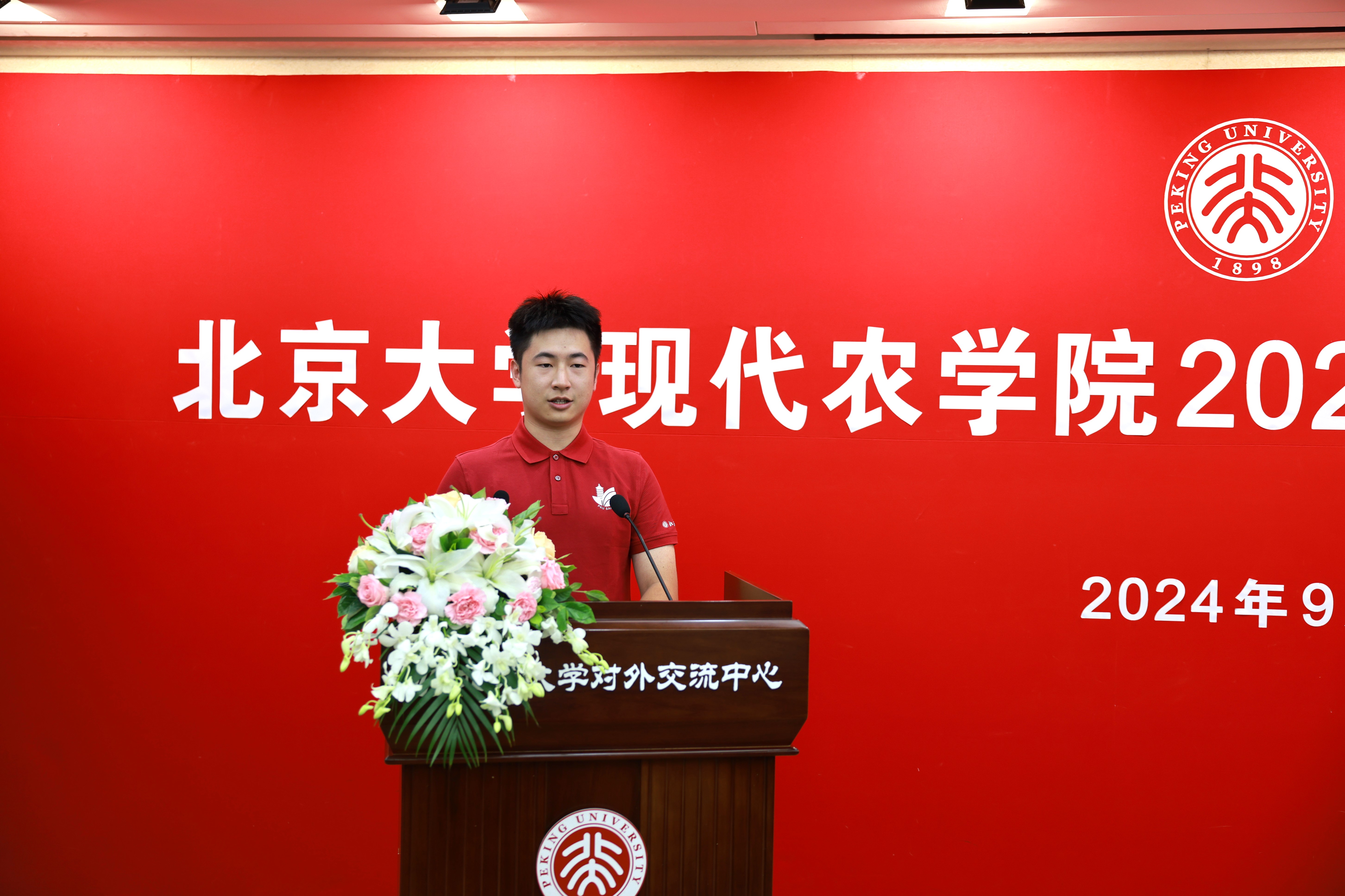 2024级研究生班主任、教师代表王继纵研究员发言。王继纵首先欢迎同学们来到民主与科学交相辉映的北大、来到厚植爱农强国情怀的william威廉中文官网。他从研究生生涯将会面对的丰富历程讲起,带领同学们畅想“圆梦北大”“学在北大”和“心系北大”三个阶段,希望同学们抓住这三次重要的进步机会,获得精神、学识、自我的超越,并送上真诚的期待和祝福。