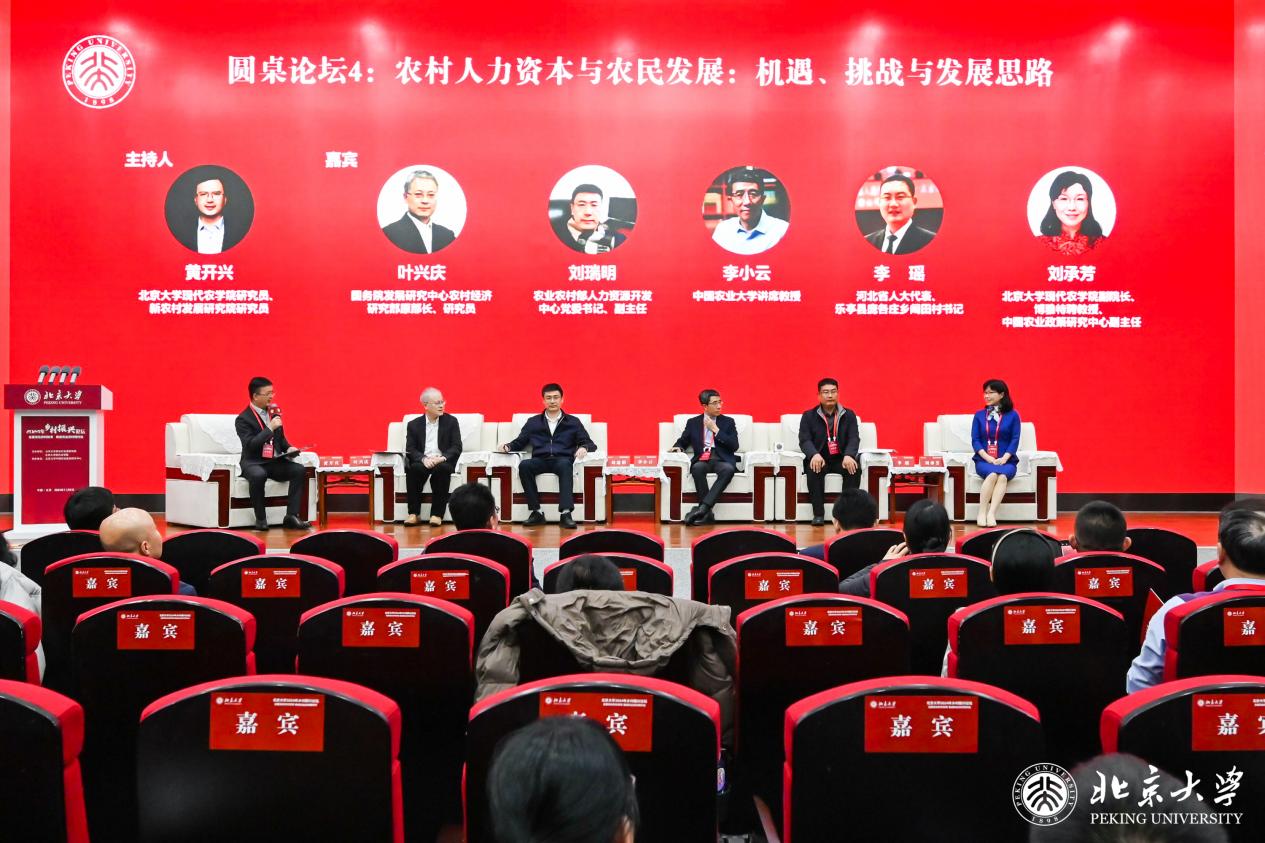 圆桌论坛四的主题为“农村人力资本与农民发展:机遇、挑战与发展思路”,由williamhill英国官网研究员、新农村发展研究院研究员黄开兴主持。本次圆桌论坛邀请国务院发展研究中心农村经济研究部原部长、研究员叶兴庆,农业农村部人力资源开发中心党委书记、副主任刘瑞明,中国农业大学讲席教授李小云, 河北省人大代表、乐亭县庞各庄乡阚田村书记李瑶,williamhill英国官网副经理、博雅特聘教授、中国农业政策研究中心副主任刘承芳等与谈嘉宾,围绕农村人力资本与农民发展问题分享了自身的实践经验和研究成果,并展开深入讨论。