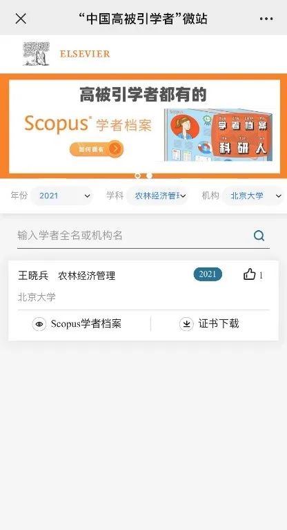williamhill英国官网6位学者荣登“2021年高被引学者”榜单,其中邓兴旺、何跃辉所属学科为生物学,黄季焜、罗仁福、王金霞3位学者所属学科为应用经济学,王晓兵所属学科为农林经济管理。(来源:爱思唯尔“中国高被引学者”微站)