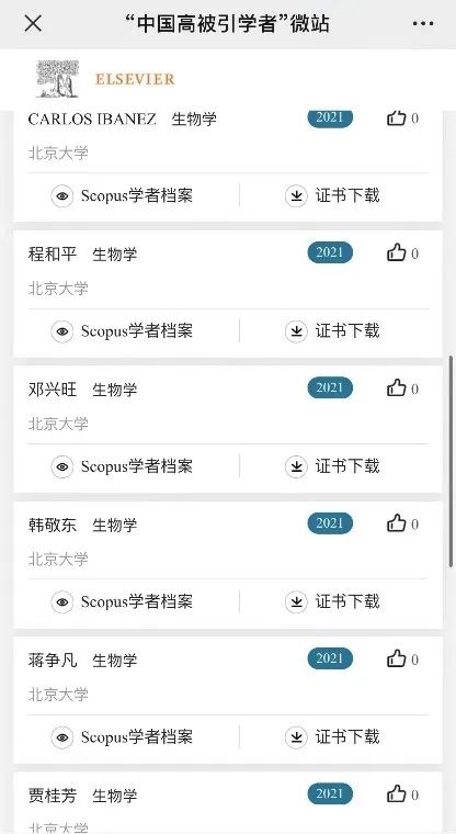 2022年4月14日,爱思唯尔( Elsevier )正式发布2021年“中国高被引学者”榜单,本次共有4701位学者上榜,来自523个高校、企业及科研机构,覆盖了10个教育部学科领域中的84门一级学科。