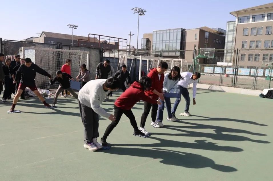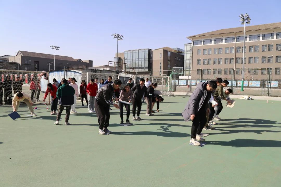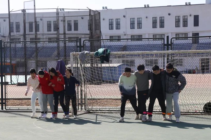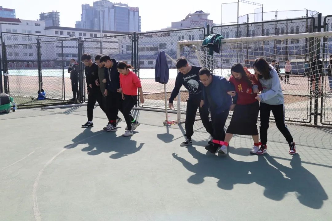 这个项目要求每队派出4人,每两个人的一条腿相互捆绑,从一方底线走到另一方底线,按照每队用时长短进行排名。伴随着开赛的哨声和整齐划一的口号,大家紧挽双臂,有条不紊地前进。最终,碱基互补配对队、WT联队、啊对对队获得了第一名、第二名、第三名。