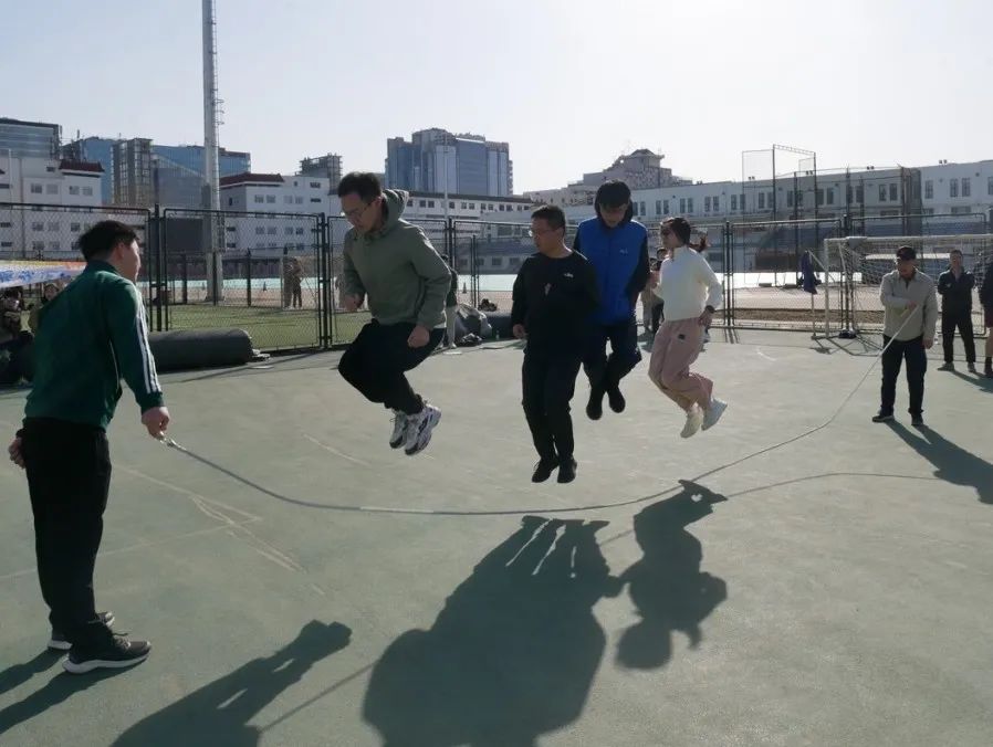 这个项目要求每队派出2人负责摇绳,其余队员直接站在大绳中央处跳绳,按照1分钟内跳绳总个数进行排名。因此,这个项目综合考验着大家的体力、身体协调能力和默契程度。伴随着绳子的挥动和周围的呐喊声,队员们身轻如燕,节奏感十足。最终,碱基互补配对队、好好学习组、小宇宙JR分别获得第一名、第二名、第三名。