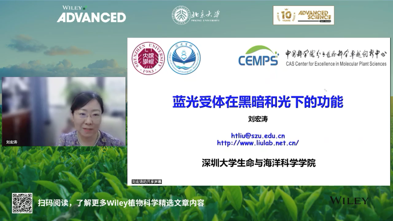 刘宏涛老师从提高产量需要提高作物的耐密植性出发,提出研究光信号以及光受体的重要性。随后刘老师介绍了她实验室围绕蓝光受体CRY1、CRY2在光形态建成和开花过程中的一系列工作,并揭示了“光”作为一种开关,可能激活一些信号,也可能关闭一些信号,从而综合调控植物生长发育。
