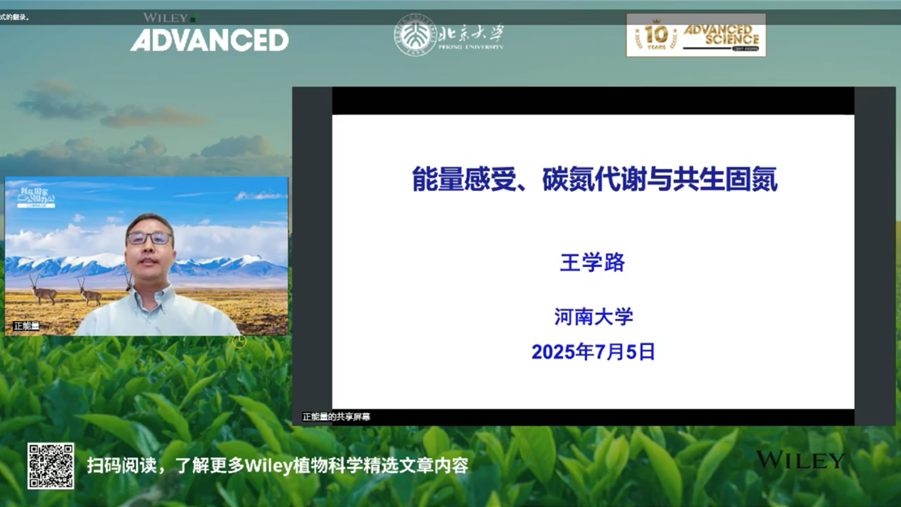 王学路老师从豆科植物结瘤固氮的现象出发,引出在减少化肥使用并保障增产稳产条件下,研究共生固氮机制的必要性。王老师介绍了他们课题组发现的GmNAS1/NAP1能量感受器,不同于经典的能量感受器AMPK,可以直接激活、调控碳源分配,并促进共生固氮的分子机制,为设计碳源高效利用的大豆品种奠定了重要理论基础。