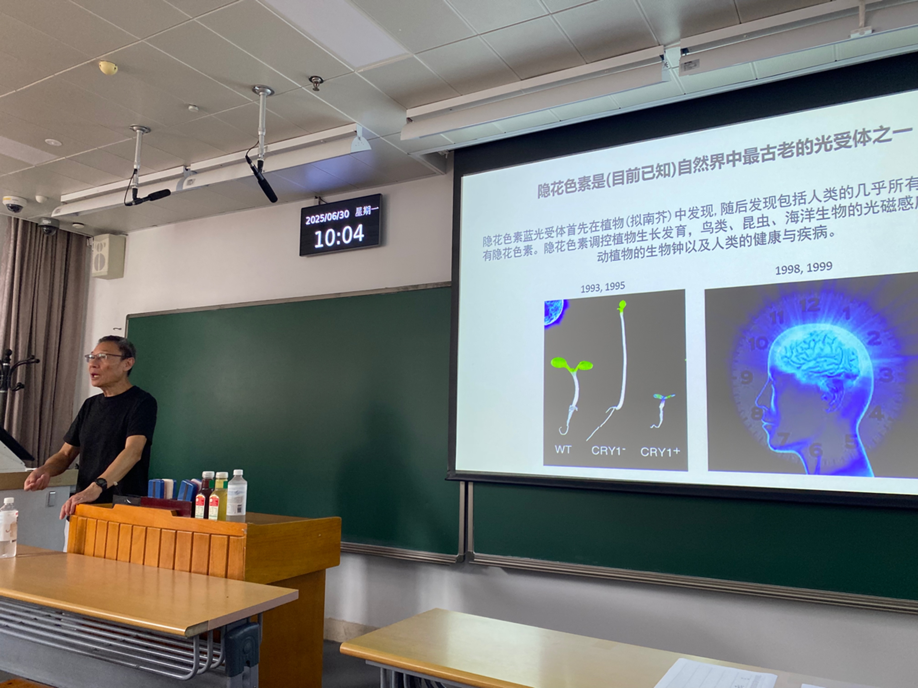 在邓老师介绍的多种神奇植物现象中,植物具有多种趋向性,比如向光性、向水性、避盐性等,引发了同学们对后续课程的思考。其中向光性的研究本质上就是研究植物怎么“看”世界,邓老师介绍了他的实验室在植物光受体研究的发展脉络,并系统的解析了植物如何感知和传导光信号。