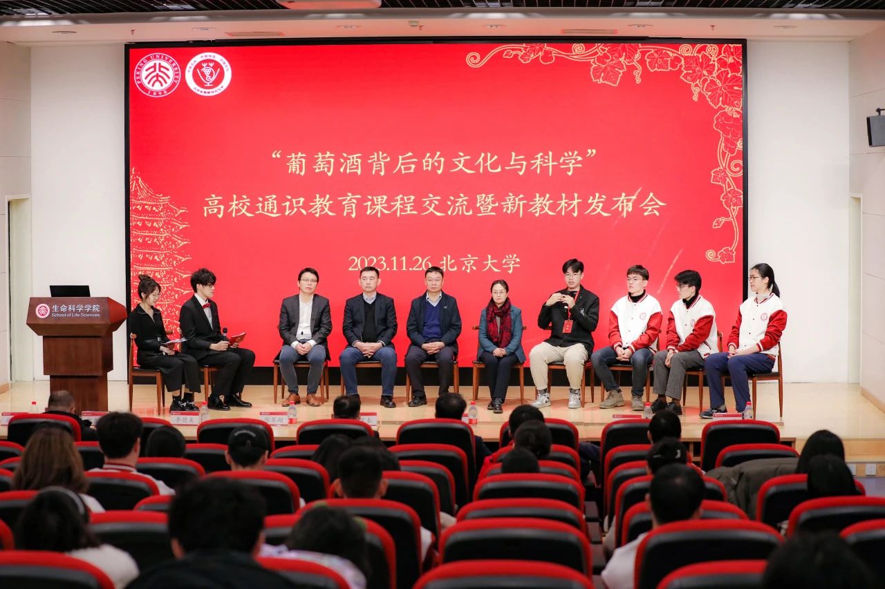 2023年11月26日下午,在金光生命科学大楼,来自全国与葡萄和葡萄酒教学科研有关的30多所高校的师生和行业内专家学者,参加了“葡萄酒背后的文化与科学高校通识教育课程交流暨新教材发布会”活动。