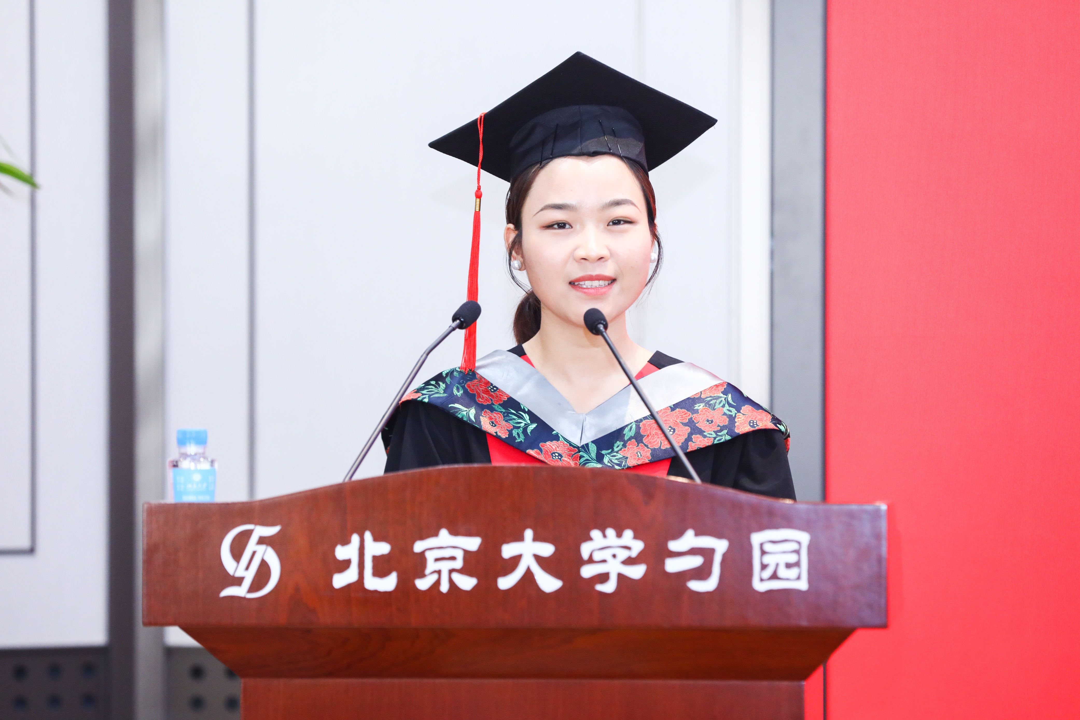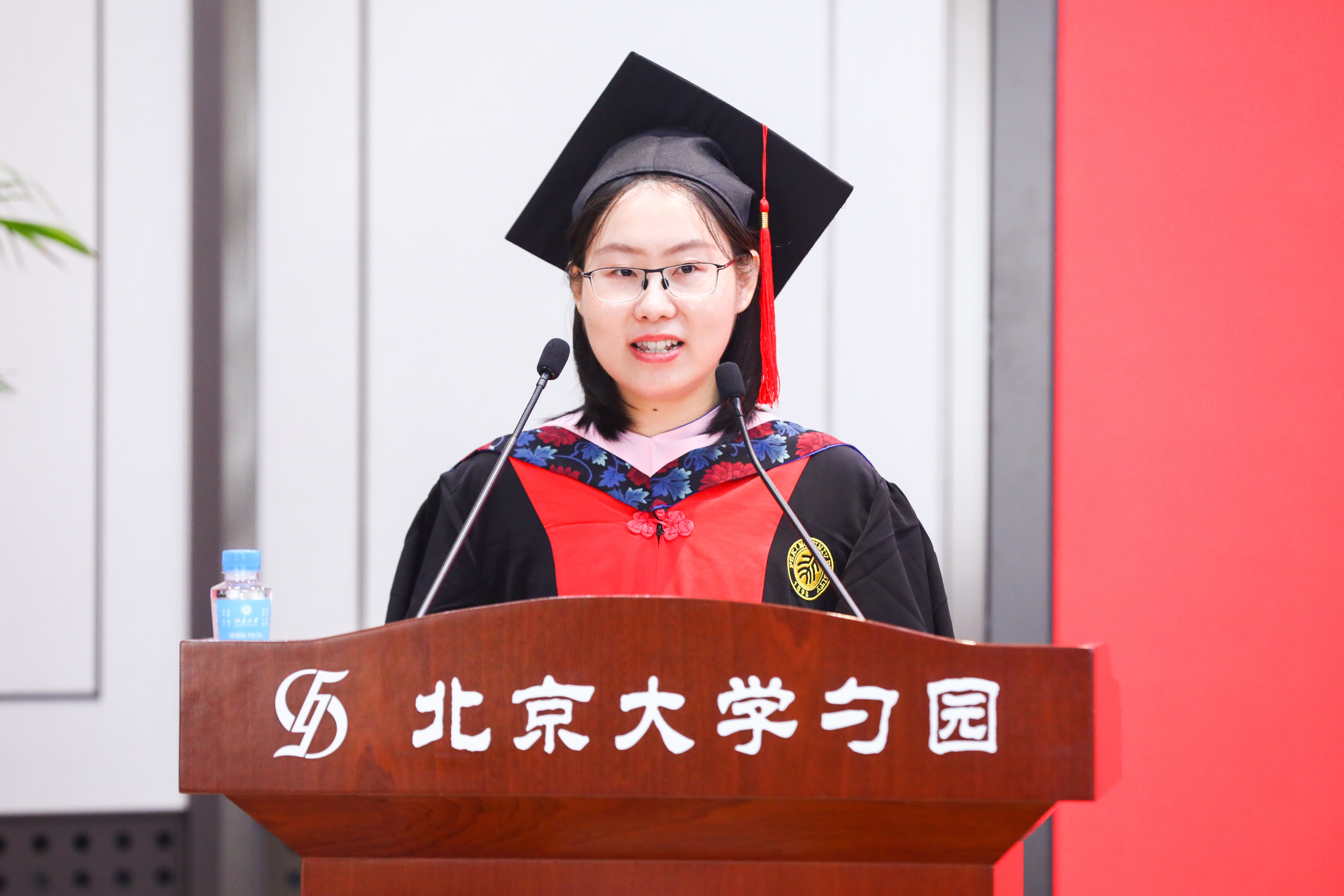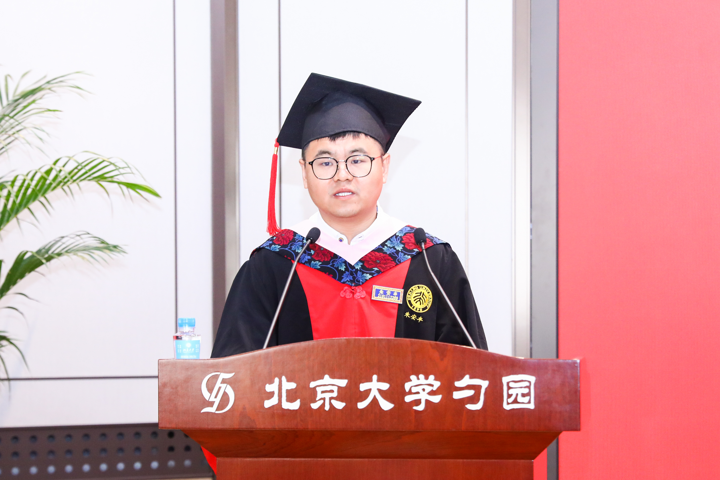 朱安丰作为农业经济管理专业毕业生代表发言。他认为,充满挑战的时代带来了应该“何去何从”的深刻思考,北大求学时光对此给出的答案是:“问题导向”的思维范式、“抽丝剥茧”的分析能力和“明辨慎思”的学术品格。他呼吁同学们在充满不确定性的时代中把握机遇,带着“解民生之多艰”的使命,在乡村全面振兴的广阔天地中书写新的篇章。
