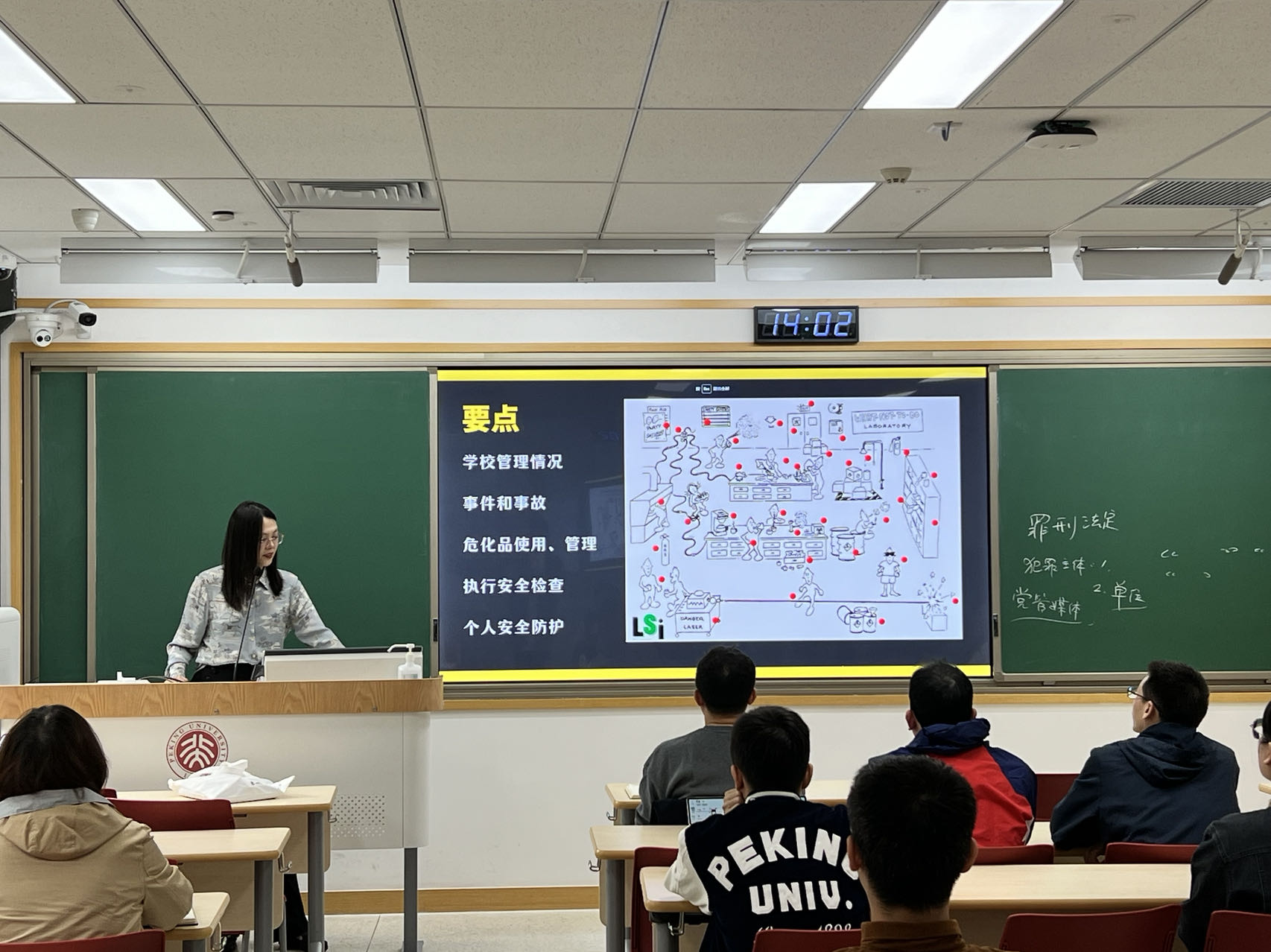 刘雪蕾老师分享了近年来发生在各高校的实验室安全事故案例,用图片及视频资料为大家生动讲解了实验室安全工作的必要性、危险品分类及处理、实验室操作规范及应急处置等知识,并分析了导致事故发生的主要隐患、风险,以及遇到突发情况的处置方法、自救互救等要点。刘老师还就学校近期实验室安全检查工作中发现的重点问题进行了解读,并结合william威廉中文官网实际情况,提出了学院在实验室安全中存在的隐患,并针对性地介绍了实验过程中主要使用的危险化学品的存放、管理方法等内容。刘老师强调,只有从实验前期准备-实验过程中操作-实验后处理等每个环节都落实好安全操作规范、掌握应急处理方法,才能从源头杜绝安全事故的发生。