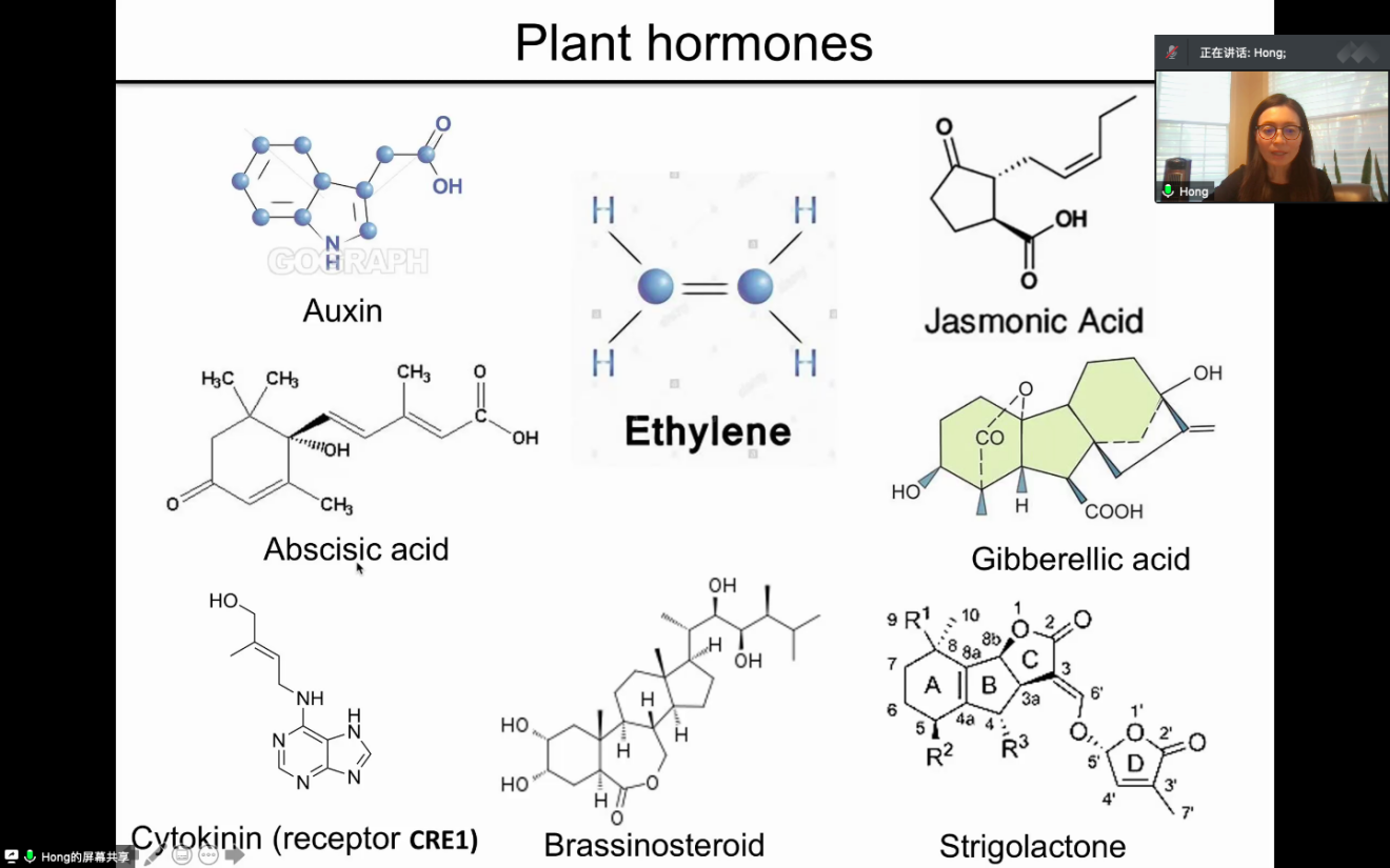 乔红老师为大家介绍了植物激素以及乙烯信号通路的相关知识和前沿进展。乔老师在课程中介绍了生长素、赤霉素、茉莉酸、独脚金内酯、脱落酸、乙烯等激素的发现历程和信号转导通路,并比较了不同激素之间的信号转导异同之处以及形成的调控网络,植物激素在农作物、果蔬、花卉中的应用。
