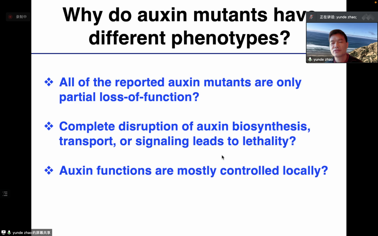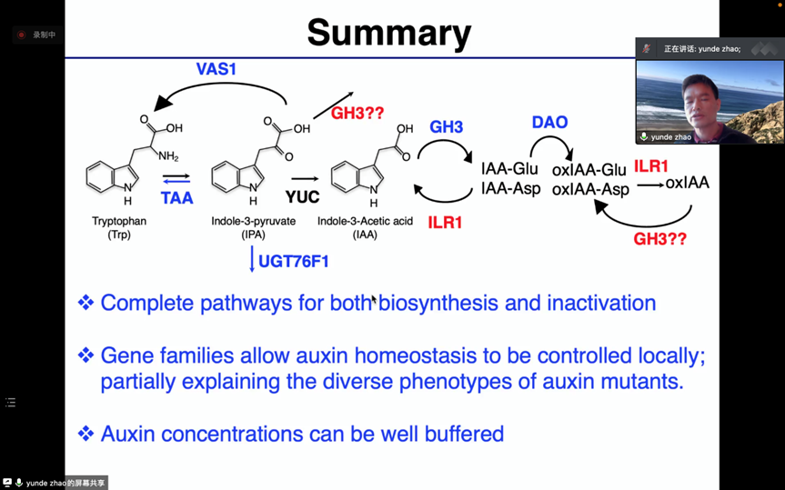 晚上的课程中,赵老师讲解了生长素相关的内容,通过提出假设问题,在从多个方面思考验证假说是否为真。赵老师以YUCCA基因的研究为例,为大家介绍了不断思考和求证的过程。同时赵老师也介绍了YUCCA基因家族中不同yucca缺失突变体组合对植物生长发育的不同影响。