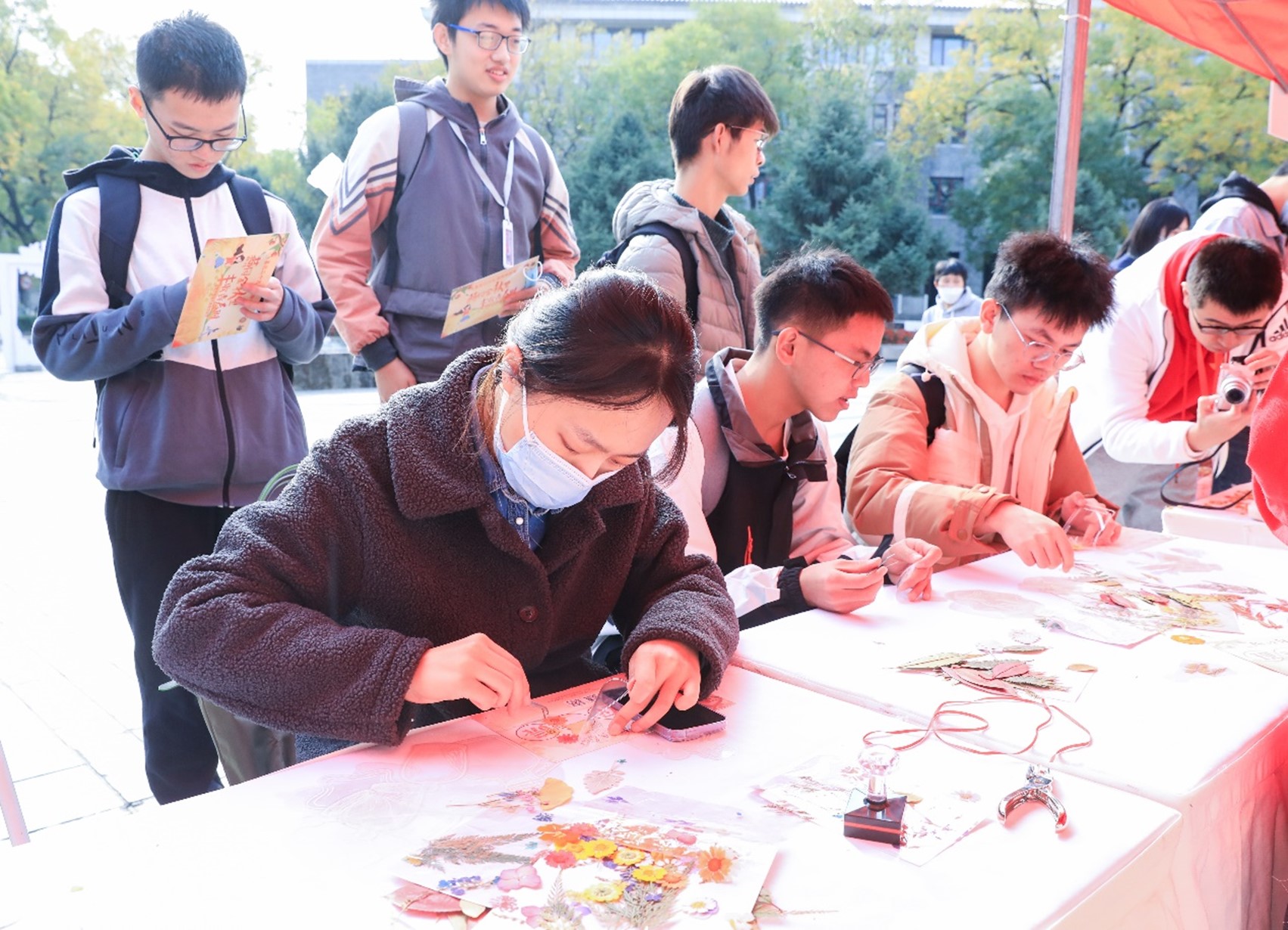 留住土地的无私馈赠,感恩自然的慷慨赠与,在场师生根据指导制作精美的干花书签,将美丽与花香永久封存。