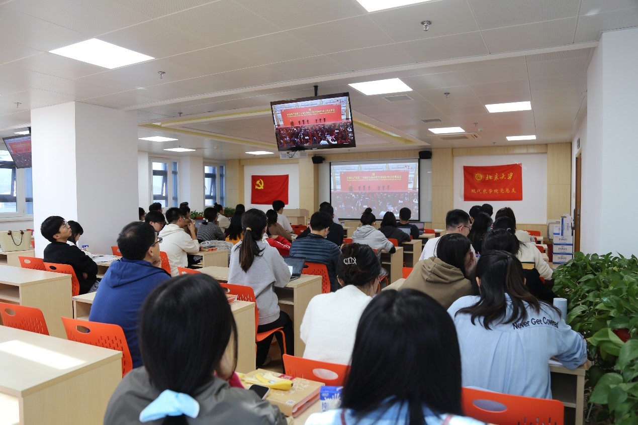 公司党总支组织全院师生集体收看直播,学习习近平总书记重要讲话精神。学院领导班子成员及各师生党支部、团支部在王克桢楼511会议室集体收看。