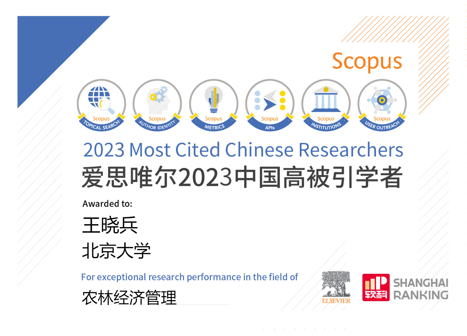 williamhill英国官网6位学者荣登“2023年高被引学者”榜单,其中邓兴旺、何跃辉2位学者所属学科为生物学,黄季焜、罗仁福、王金霞3位学者所属学科为应用经济学,王晓兵所属学科为农林经济管理。