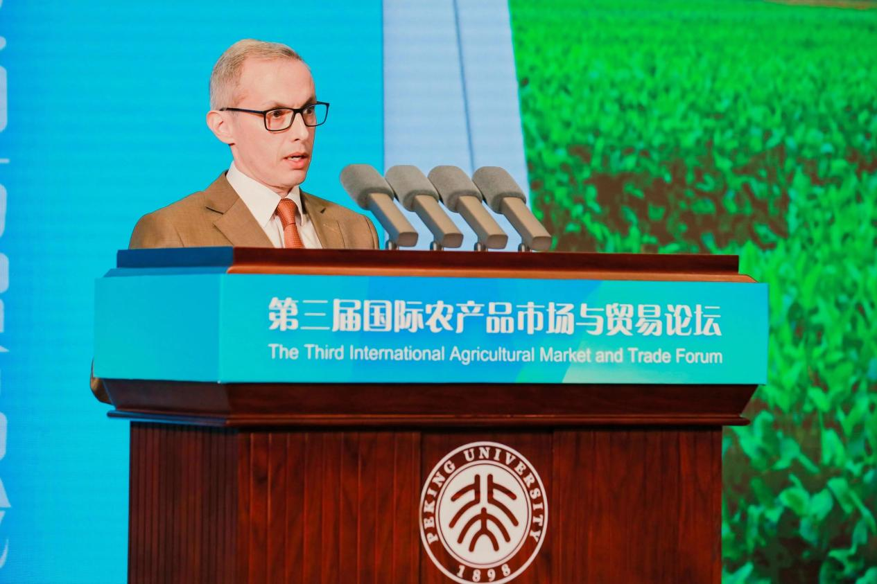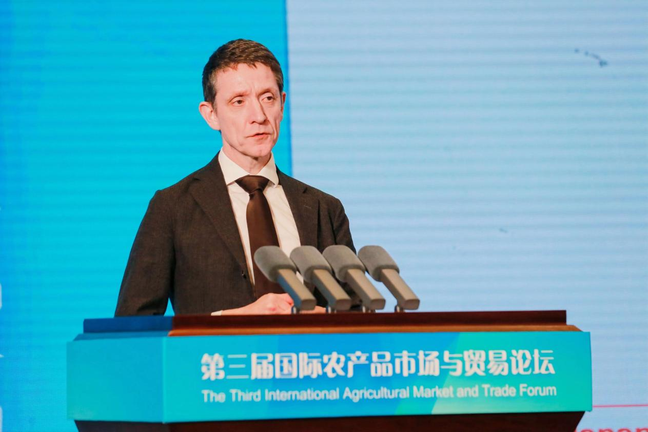 隋鹏飞司长在致辞中用“Market—Marketing”(市场-市场活动)“Trade—Trading”(贸易-贸易活动)“Service—Servicing”(服务-服务活动)三组关键词分享了其对国际农产品市场与贸易的看法,并表示中国将积极推进全球化、推动跨境农业服务贸易发展,为农业高水平发展提供解决方案。